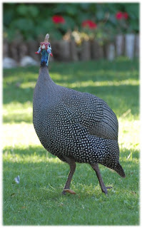 I trotted over and fished the peep out of the pool and moved towards the flock to return him. At which point I got charged. By Father Guinea. Wings up and hecking at the top of his voice. I stalked up to him, put small peep down and said, “Shut up, you daft bird, anyone else would think some gratitude was in order!”