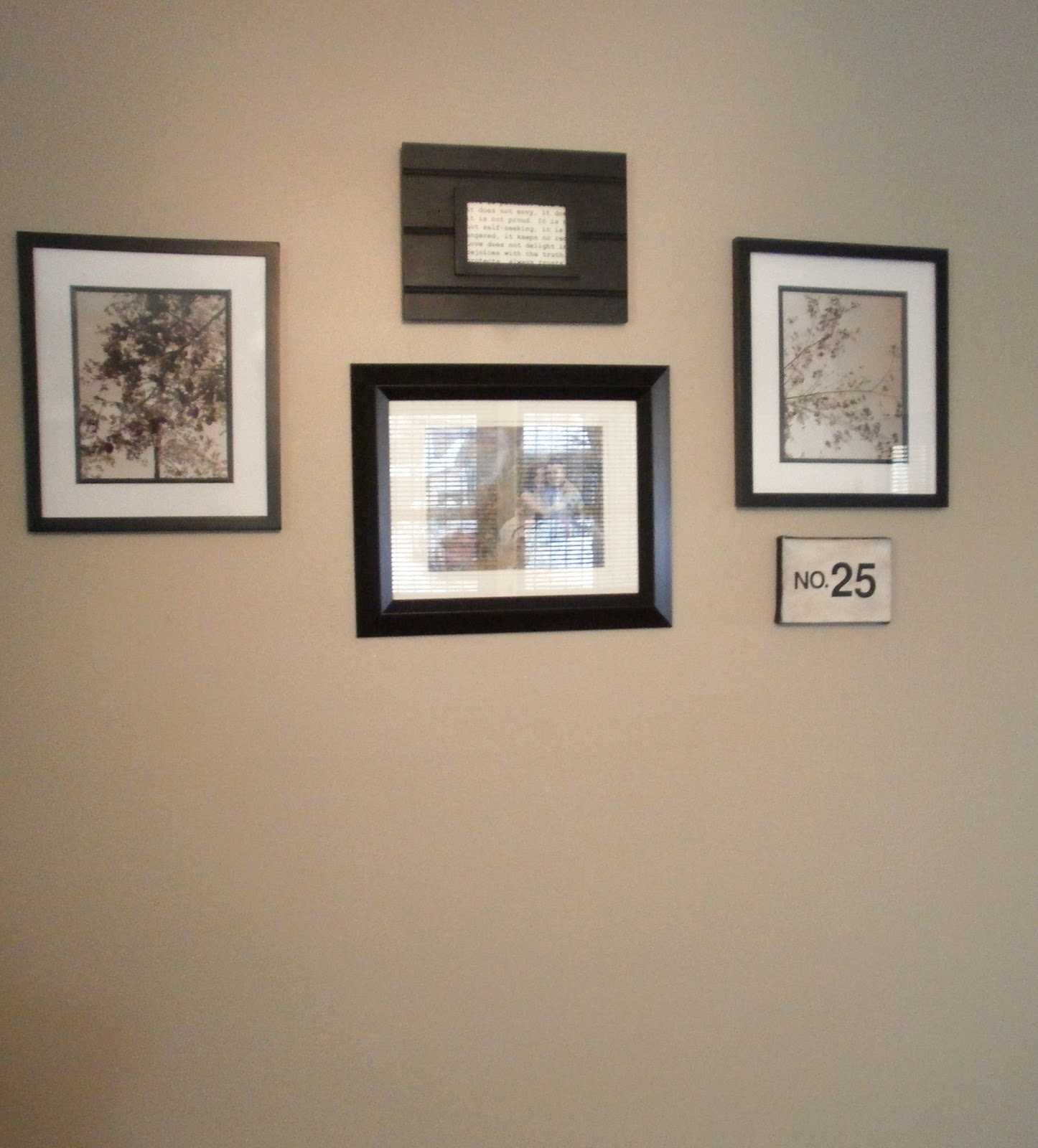 Another "too dark" area of the room. When I lived at home, I loved black accents. Now that we're in our own home, my tastes are changing. I would love to replace these black frames with all white ones.